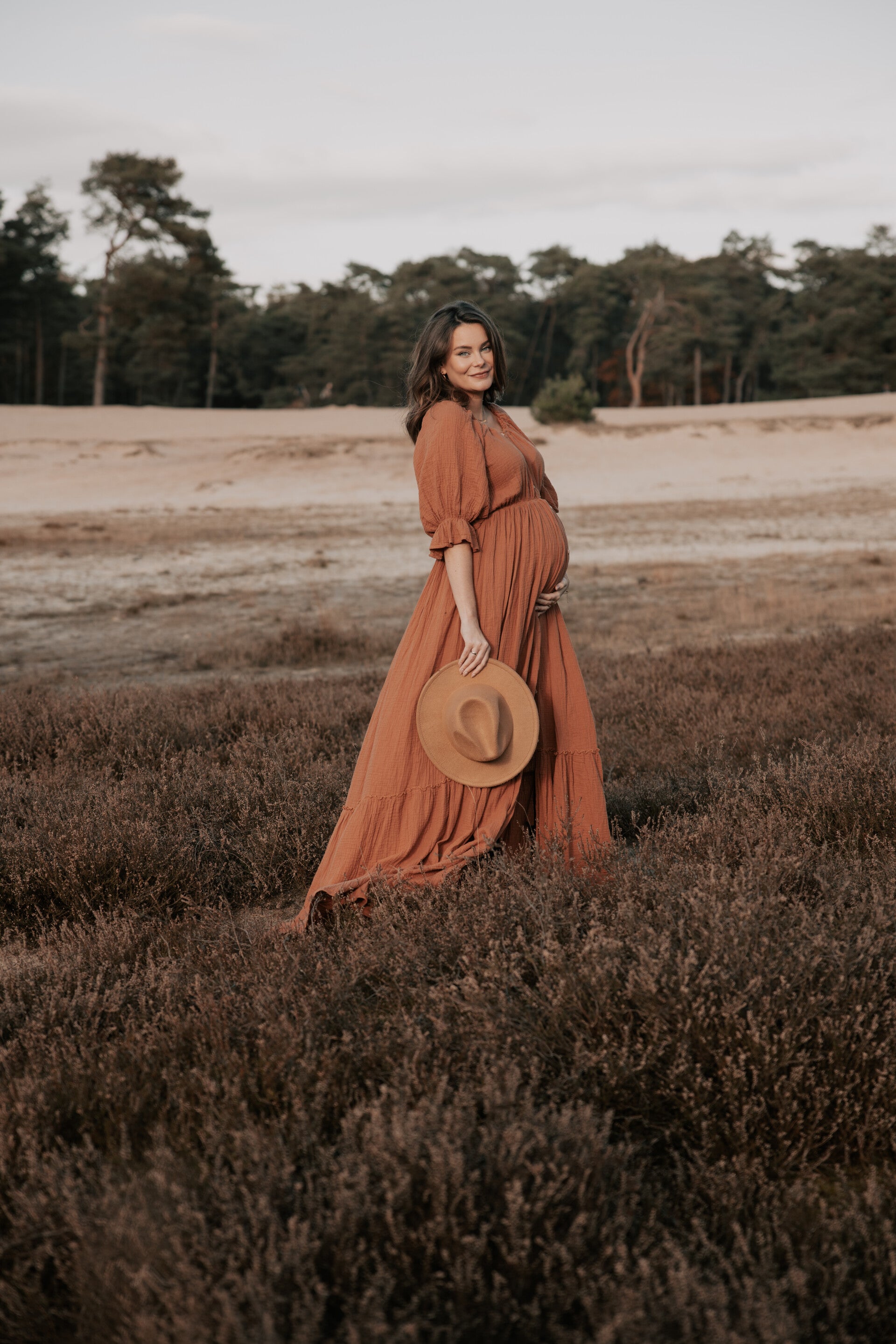 Dress Loua is een prachtige jurk met knoopjes over de gehele voorzijde die je tot over de buik open kan doen.