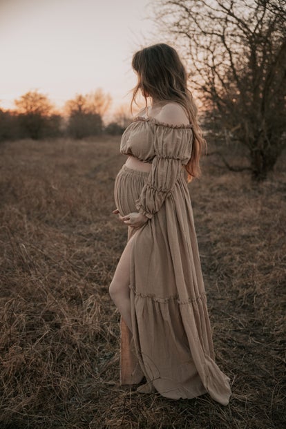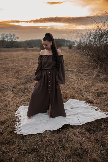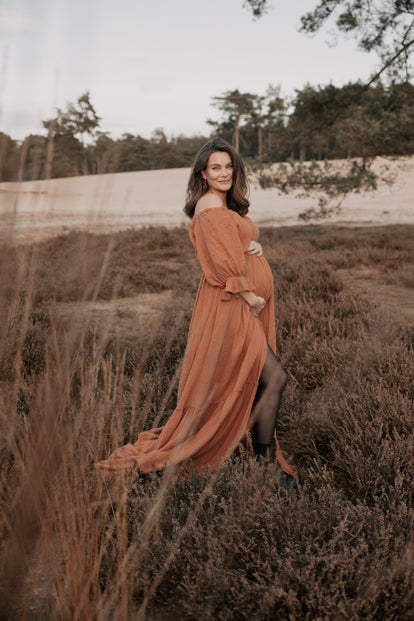 Dress Josefine is een prachtige bruine jurk met knoopjes over de voorzijde. Deze jurk is babybellyproof maar ook prachtig bij een motherhoodsession.